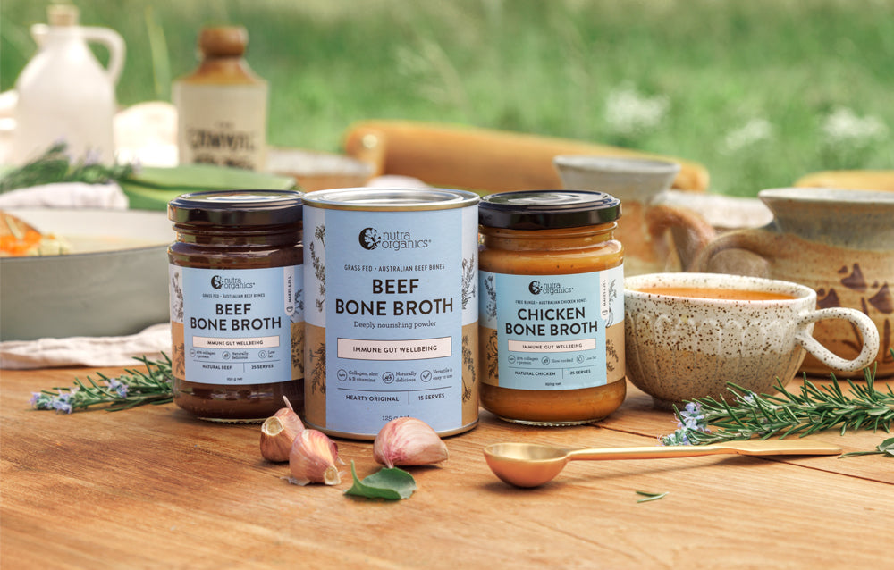 Looking to buy bone broth in Australia? Look no further! We’re confident we’ve got the best bone broth in the tastiest range of flavours. Our low sodium bone broth powders and concentrated bone broths are naturally nourishing and super convenient to add protein, zinc and B vitamins into your diet. All vitamins and minerals in our bone broth powders and concentrates are from wholefoods, no synthetics here, that means your body can actually use the bioavailable vitamins and minerals. Feel confident when you buy bone broth from Nutra Organics that you are choosing from a range of high-quality bone broth powders and concentrates designed to support your health and wellbeing.
